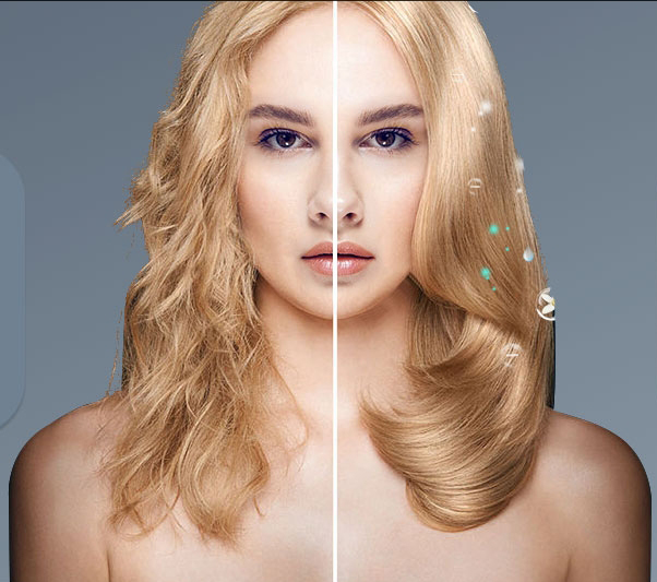 10 millions d'ions négatifs et une adhérence 2x plus rapide = cheveux 4x plus brillants et lisses